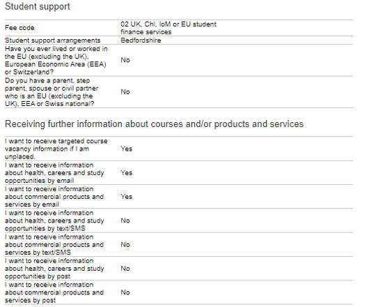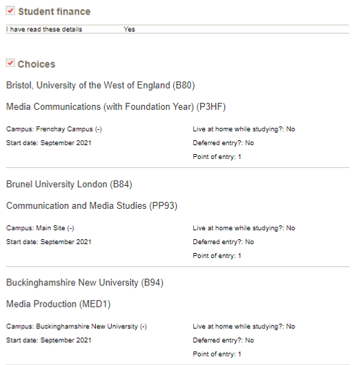 Completed UCAS application